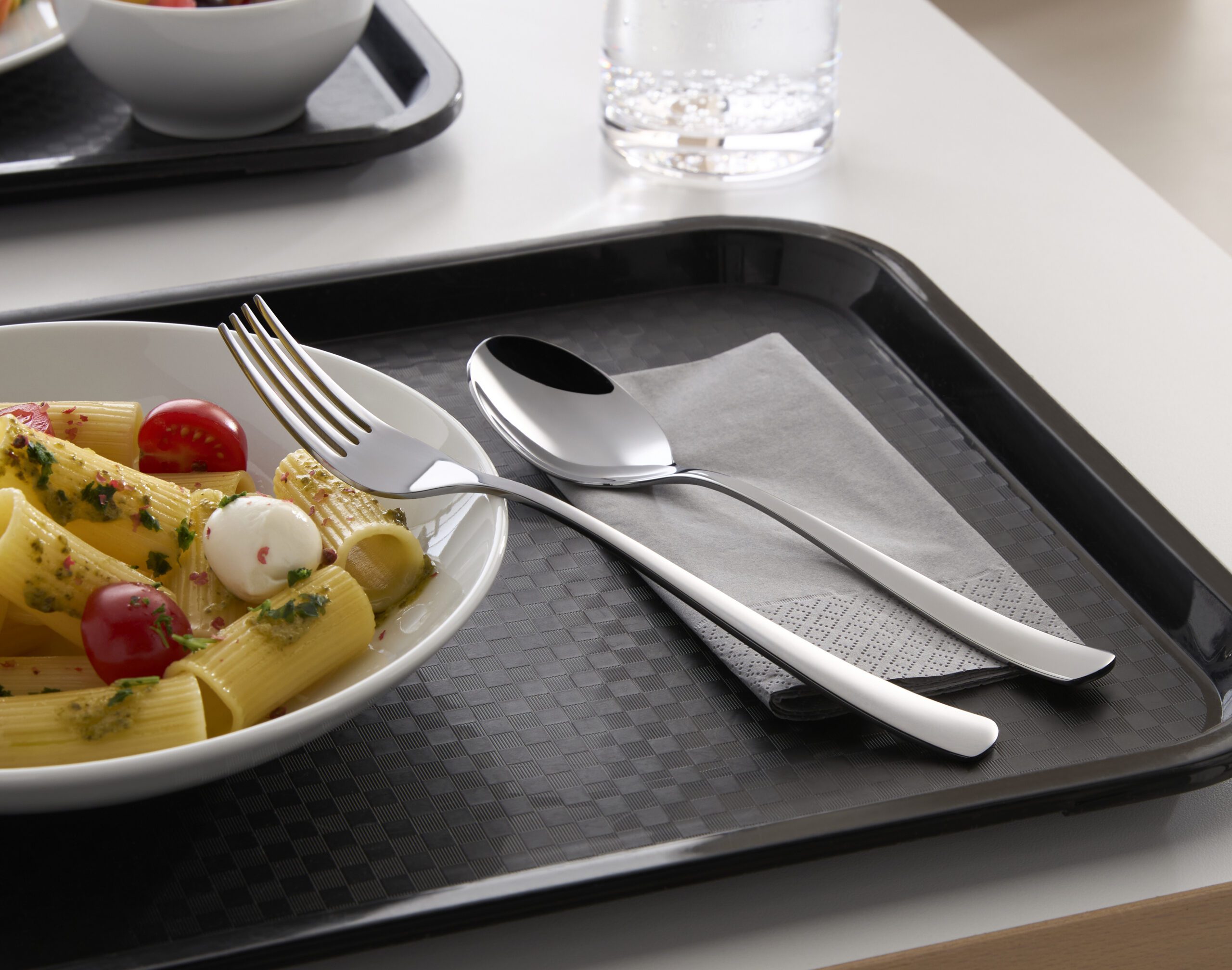 Das bewusst neutral gehaltene Design fügt sich harmonisch in bestehende Bestecksortimente ein und erleichtert den systemübergreifenden Ersatz einzelner Teile. Für Betreiber entsteht dadurch eine hohe Flexibilität bei Nachbestellungen sowie die Möglichkeit, Bestände schrittweise zu ergänzen oder zu erneuern, ohne die visuelle Einheit der Ausstattung zu verändern. Ein weiterer zentraler Aspekt ist die materialtechnische Differenzierung. EVO ist in den Edelstahlvarianten 18/10 sowie 18/0 erhältlich und deckt damit unterschiedliche Einsatzprofile ab. 18/0 adressiert beispielsweise ganz gezielt Betriebe mit automatisierten Spülprozessen: Die magnetischen Eigenschaften ermöglichen eine zuverlässige Bestecktrennung in Spülstraßen und unterstützen effiziente Rückführungs- und Sortierprozesse bei hohem Durchsatz.