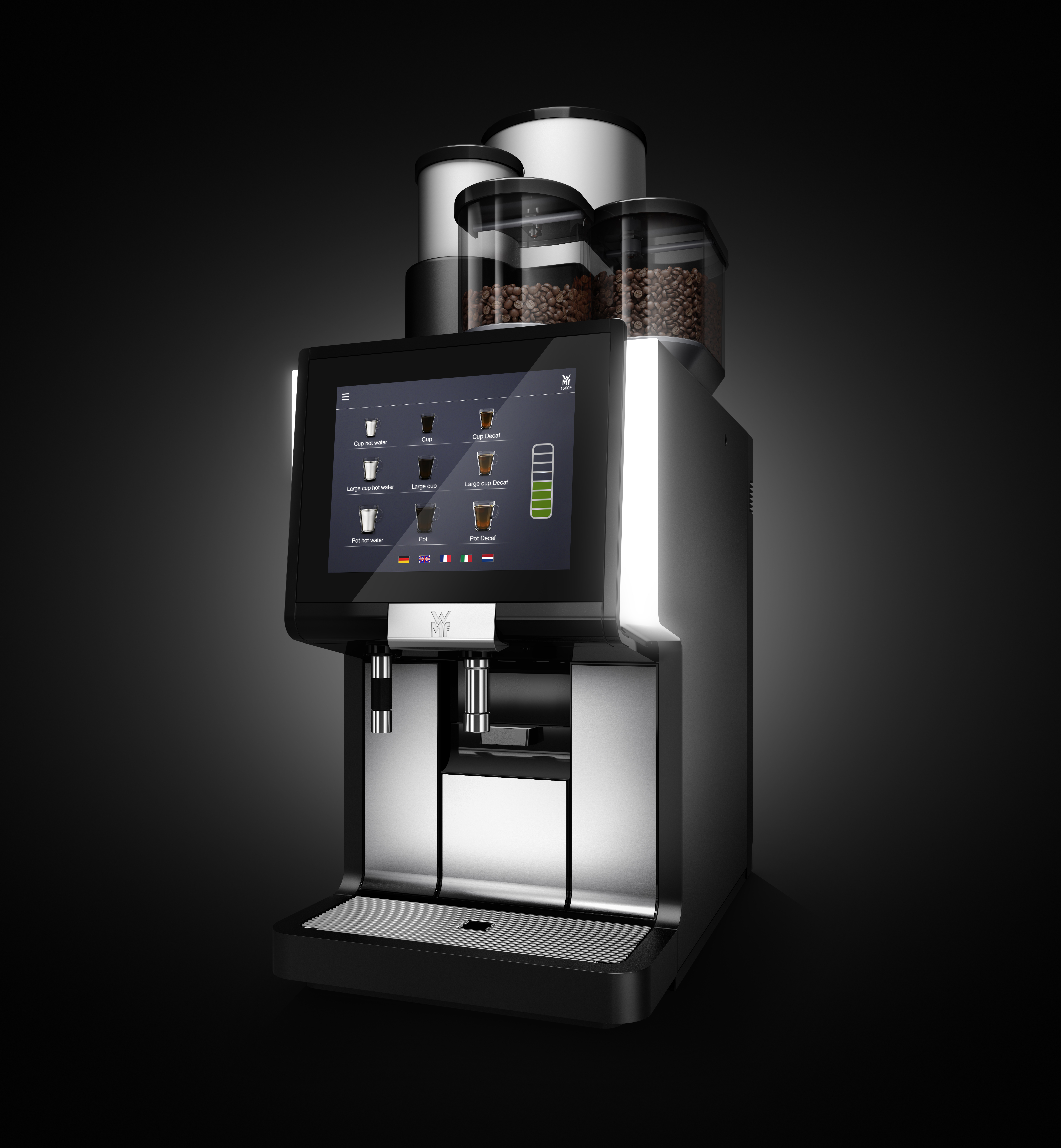 Image material for download is available here: https://aboutwmf.com/en/download/bean-to-cup-machine-wmf-1500-f/